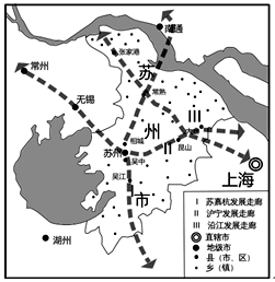 5、单选题 近年来,苏州市沿江地带形成以冶金、能源、纺织、化工、粮油等基础产业为主的产业群体。图2中的Ⅰ、Ⅱ、Ⅲ示意苏州市城市化、工业化发展走廊。据此回答问题。
