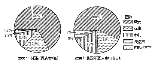 读2000年我国能源消费构成和2020年我国能源消费构成目标图,结合图示材料和所学知识回答: