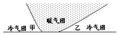 小题2:甲、乙两地在此天气系统影响下,天气状况最可能是