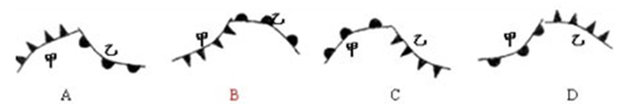 小题1:图中能正确表示控制甲、乙两地的天气系统是(???)