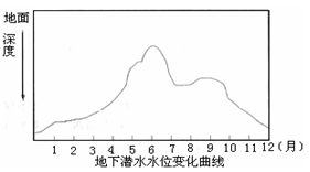 1、单选题  图为我国某地区正常年份地下潜水位年变化示意图,读图完成下列各题。