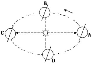 (4)(作图)在图中A、B、C、D上标注地球自转方向。