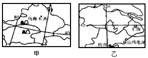 4、综合题  下图中的甲、乙为我国的两个区域,读图回答问题。