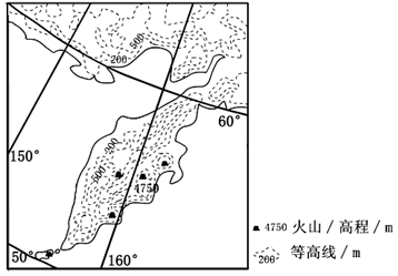 【小题1】本题考查板块运动学说、区域定位,根据图中的经纬度排列判断,图中的纬度为北纬,经度为东经。所以图示半岛位于北太平洋,具体为图示半岛为勘察加半岛。板块内部地壳相对稳定,板块边界地壳活动频繁,该半岛位于太平洋板块的边界,太平洋板块与亚欧板块的交界属于消亡边界,板块之间相互挤压。所以本题选择D选项。
