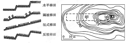 【小题1】结合坡面坡度分布特点,图中甲区地形适合修筑的梯田类型是