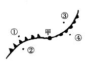 5、单选题 下图中甲地位于低气压中心,读图回答下题。