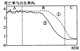 (2)A时期,人口增长特征:极高的出生率、极高的死亡率、极低的人口自然增长率,故