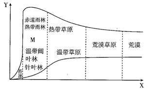 A.地理环境的生产功能 B.地理环境的整体性 C.地理环境的差异性 D.地理环境的平衡功能 参考答案:小题1:C 本题解析:略 本题难度:一般 3、单选题  下图是陆地自然景观类型分布与水热条件关系示意图。读图,回答以下两题: 参考答案:1. A 本题解析:1.图为“陆地自然景观类型分布与水热条件关系示意图”,从图中信息可知:沿X方向,自然景观由森林过渡到草原再过渡到荒漠,符合由沿海向内陆的地域分异,是由于水分逐渐减少而导致的;沿Y方向,自然景观由针叶林过渡到温带森林再过渡到热带雨林,符合由两极到赤道的地域分异,是由热量逐渐增多而形成的。 本题难度:一般 4、单选题  下列人文现象对自然环境具有明显指示性的是 参考答案:C 本题解析:本题考查地理环境与人类活动的关系。梯田可以反映丘陵地形;吊脚楼可以反映湿热的气候。寺庙和城市雕像,是文化现象,不能反映自然地理环境。所以本题选择C选项。 本题难度:一般 5、填空题  “厄尔尼诺”现象发生时,下列说法正确的是(????)??????????????????????????????????????????????? 参考答案:AB 本题解析:本题考查“厄尔尼诺”现象发生的时间和季节判读。当南太平洋东部的秘鲁寒流势力减弱,海水异常升温,出现厄尔尼诺现象。厄尔尼诺现象又被称之为“圣婴”,常发生在圣诞节前后,所以北半球正值冬季。所以塔里木河正值枯水期,正确;长江口处于枯水期,海口注入淡水少,海水盐度高,正确;黄河处于枯水期,所以应该是地下水补给河流水,所以C错误;“伏季休渔”是夏季,所以D错误。所以本题选择AB选项。 本题难度:简单  |