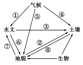 A.茶树 B.油橄榄 C.油棕 D.天然橡胶 4、单选题  针对滑坡、泥石流这种自然灾害的防治措施是 5、单选题  下图为陆地环境主要构成要素的相互关联图,读图完成下列各题。  |