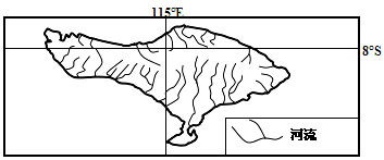 巴厘岛位于赤道附近,终年受赤道低气压带的控制,气体盛行上升运动,形成热带雨林气候,终年高温多雨,据图结合图示河流分布,故判断地形中高周低,由于河流主要向南北两侧分流,故巴厘岛山地走向为东西向,所以本题A正确。