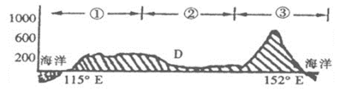 4、单选题 下图是“某国沿纬度为30°的地形剖面图”,读图回答各题。