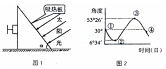 ①石家庄???????②郑州?????③武汉?????????④长沙 A.①③②④ B.①②③④ C.④③⑦① D.②①③④ 3、单选题 某地水平运动的物体左偏,一年中有两次太阳直射,该地位于 4、单选题 我国某校的同学自制了一台可调式太阳能热水器(图1),以便使热水器的吸热面每天都能获得最多的太阳辐射,图2是该小组绘制的连续一年多吸热板与地面的夹角(α)变化图。据此完成下列各题 |