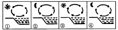 (3)由上题可知,②环节是将海洋水汽输送到陆地,在四幅图中能实现这一环节的只有③了,是白天时,陆地气温高、气压低,海洋气温低、气压高,风会由海洋吹向陆地.