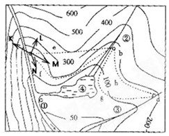 5、单选题 读等高线图回答:图中数字表示的各地中,坡度最大的是(?????? )