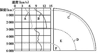4、综合题  读地震波波速与地球内部构造图,回答: