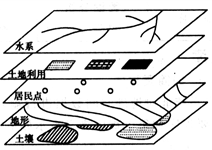 单选题 该图为某专题研究建立的地理信息系统( GIS)示意图层。据此完成以下各题。
