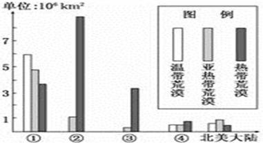单选题&nb sp; 如图是世界各大陆荒漠构成状况。读图,回答下列各题: