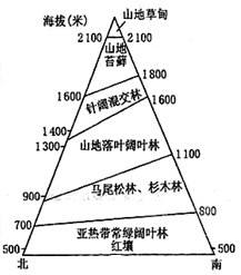 1.根据该山地的垂直自然带谱判断,该山地可能位于2.该山地同一自然带的分布南坡明显高于北来源:91考试网 91eXAm.org坡,说明南坡与北坡相比: