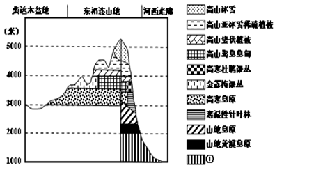 1.图中①处的植被是2.高山冰雪下界在东北与西南坡分布的高低及原因,叙述正确的是