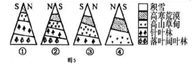 图5所示四幅“山地垂直自然带谱图”中,与南半球温带山地相吻合?【人类与地理环境的协调发展】