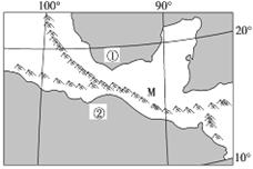 1.图中M山地东、西两坡山麓地带的植被类型是2.依据板块构造学说,图中M山地位于3.关于图中海域①、②的叙述,正确的是