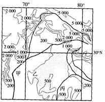 2.图示乙沙漠应为主要位于塔尔沙漠,该沙漠并不位于沿海,故成因排除受寒流影响 。