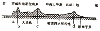 1.有关图中该部分科迪勒拉山系形成的原因,说法正确的是2.图中表示阿巴拉契亚山脉的是