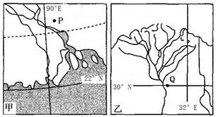 单选题 图甲、图乙为世界两条大河的三角洲略图。据此回答问题。