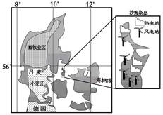 单选题 2012年6月15日,国家主席胡锦涛考察丹麦的风能发展,风电占丹麦总发电量的20%,萨姆斯小岛是丹麦的新能源样板区,岛上能源自给自足,几近“零排放”。读图,完成题。