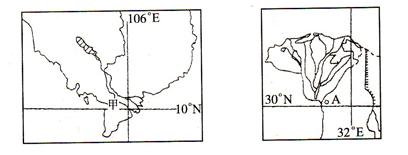 单选题 读“世界两条大河的三角洲略图”,完成问题。