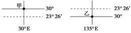 1.甲、乙两地所在国家分别是2.甲、乙两地所在国家在自然地理特征方面相似的是