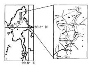 1.图中阴影地区是优质翡翠产地,含翡翠矿石的沉积物分布于山间的宽阔河道内,根据所学知识判断该地翡翠矿开采时间集中在2.图中甲港口是向我国的油气管道的起点,该管道建设的最大障碍是