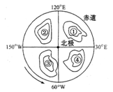 单选题 图为气压中心分布示意图,①③为大陆上气压中心,②④为海洋上气压中心。读图完成问题。