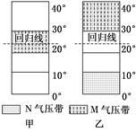 1.关于甲图所示季节各纬度带气流运动的说法,正确的是2.甲、乙两图反映的时间与季节正确的是