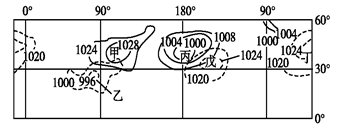 3.A项甲为亚洲高压,近地面气流为辐散;错误。B项乙表示亚洲低压,由于热力作用而形成;错误。C项丙天气系统为阿留申低压,冬季更强大;错误。D项,戊天气系统为夏威夷高压,夏季势力强盛,正确。