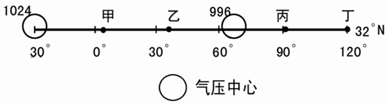 单选题&nbs p; 下图为某季节某一条纬线上气压中心分布示意图(单位:百帕)。据此完成下题。