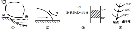 | 下列图形中表示正确的有:<img src="http://www.91exam.org/【全球气压带、风带的分布、移动规律及其对气候的影响】