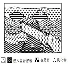 ①L1时a、b地表形态差异的原因是岩层年代不同