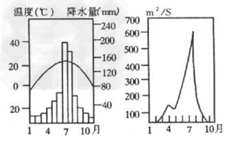 2、综合题 下图是“我国某河流水文站的气候直方图和河流流量过程图”,回答