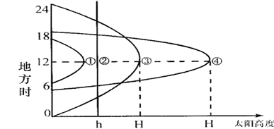 A.④①③② B.④③①② C.②①③④ D.②③①④ 参考答案:小题1:A 本题解析:小题1:本题考查正午太阳高度角的分布。根据图示:③地刚好出现极昼,白昼时间为24小时,北极点②地太阳高度为h,所以③地正午太阳高度为2h。所以本题选择A选项。 本题难度:简单 4、单选题 我国某地有一口井,一年中只有一天太阳可直射井底,该地位于 参考答案:B 本题解析:试题分析:我国某地水井,一年中只有一天太阳可直射井底,说明该地有太阳垂直照射现象,应该位于北回归线以南,只有一天直射,说明该地只能在北回归线上,其他可以垂直照射的地方每年都有两天直射现象,故答案选B。 本题难度:简单 5、单选题 因纽特人告别冬季、迎接春天到来的“春节”在 参考答案:C 本题解析:试题分析:因纽特人是位于北极圈地区的人,冬季漫长,春天到来晚,结合四个选项中时间,可知因纽特人告别冬季、迎接春天到来的“春节”在3月最后一个周末。解题关键是明白因纽特人是位于北极圈地区的人,气候寒冷、冬季漫长。 本题难度:简单 |