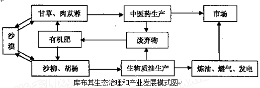 (4)读“库布其生态治理和产业发展模式”图,从可持续发展的角度简述其特点。(6分)