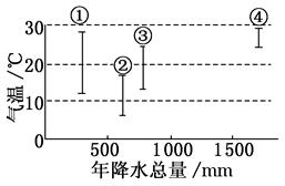 小题1:在下图所示的几种气温年内变化和年降水总量情况中,与该自然带相符的是