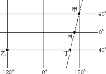 3、单选题 下图为部分经纬网,图中虚线表示某日晨线的一段。回答1~2题。