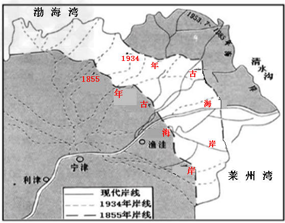 1、单选题 读某一时期内黄河入海口海岸变迁示意图,回答1-2题。