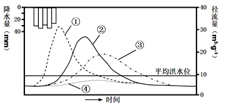 1.图中四条曲线:自然状态的洪水过程线、自然状态的地下径流过程线、城市化后的洪水过程线、修建水库后的洪水过程线,依次对应的序号分别是2.防治城市暴雨时发生内涝的最有效措施是
