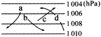 本题解析:水平气压梯度力是形成风的原动力,始终垂直于等压线,由高压指向低压;近地面的风还受到地转偏向力和摩擦力作用,最终风向与等压线斜交,而南半球地转偏向力向左偏。故图示d箭头符合。