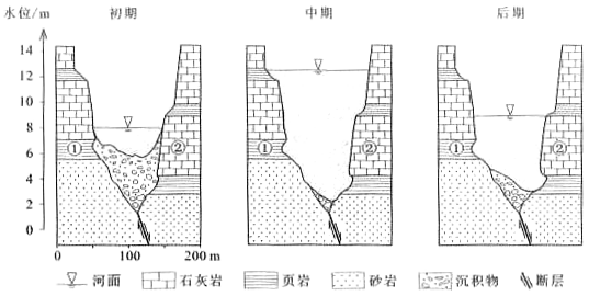 3、单选题 下图为某河谷断面经历的一次洪水过程图。读图回答下题。