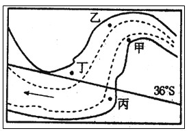 小题2:甲、乙、丙、丁四处河床,坡度最缓的是?