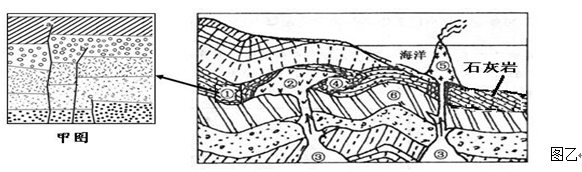 5、综合题 读下面地质剖面图,回答问题: