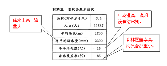 (2)说明墨脱县境内河流的水文特征,并分析该县水能开发程度较低的原因。(12分)